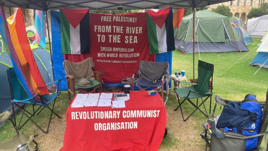 Despite a briefly cold start, our relations with UQ Socialist Alternative (UQ SAlt) quickly improved in the course of this camp by necessity to the point we are in regular correspondence. RCO Brisbane comrades intend to further these relations through engaging with SAlt’s political program and organising debates between local SAlt and RCO cadres. Given SAlt’s status as the largest far-left organisation in Australia, the implications of this for the RCO’s medium-term merger programme are legion. Many young students have also drawn into the RCO’s orbit through our engagement in the camp. Some as fellow travellers, others have expressed interest in joining as applicant members. Although far more a consensus, a more general understanding among the student body has solidified in favour of Palestine, and we expect this to become further strengthen at the GSM on the 29th. As such, we think our work so far has been invaluable with ensuring victory for our demands at a later date, and it would therefore be difficult to consider any likely outcome of the current episode of the struggle to be a complete loss.