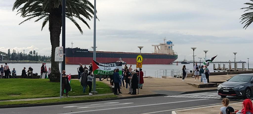 This was part of a National Day of Action called by Unionists for Palestine (and other groups), and was linked to coordinated events at every port in Australia, calling for an end to Israeli military aggression and showing solidarity with the Palestinian people in their struggle against genocide.