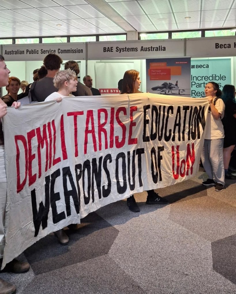 Students and supporters from the UoN Students for Palestine group disrupted the Engineering and Built Environment Expo at the University of Newcastle (UoN), hosted on March 18th 2025.