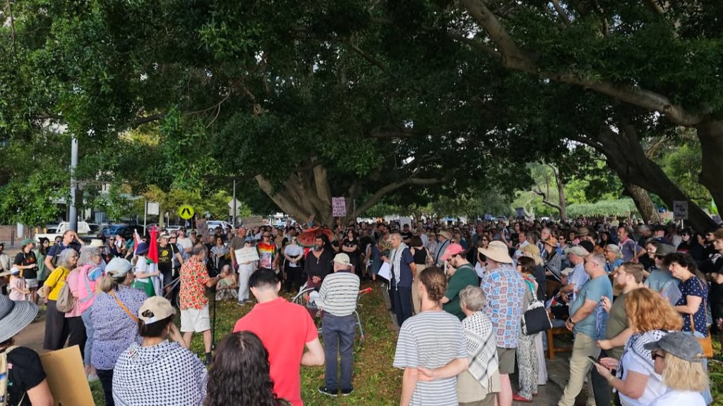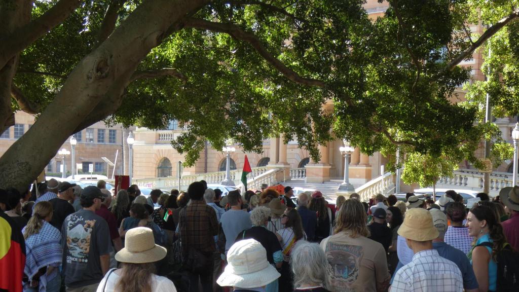A fourth speaker, a Worimi woman, berated the crowd for “coming out in numbers for Palestine… but not for First Nations”. This drew heckles from the crowd, who were perplexed at this speech, as an Indigenous activist had just spoken prior about the Indigenous struggle, and the crowd had chanted in support of Indigenous rights moments prior.