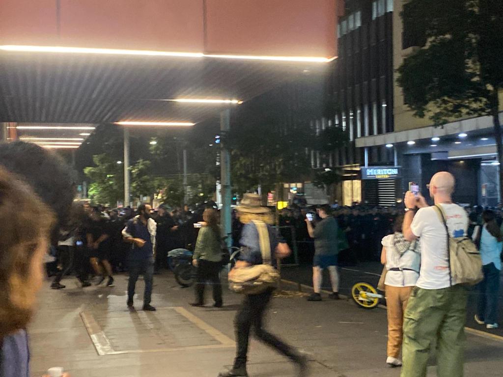 Grace Tame (2021 Australian of the Year recipient), to the outrage of reactionary media, led a chant of “globalise the intifada”. “You can buy guns and bombs, but you can’t buy love and compassion, those are our weapons.” The effectiveness of such weapons would be tested just two hours later, as police lines advanced toward the crowd.